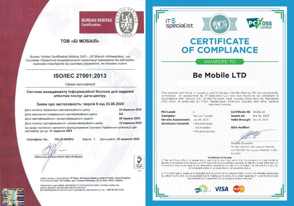 Інженерні системи та обладнання дата-парку мають дублювання N+1 або 2N, що забезпечує безперебійну роботу 24X7X365. Забезпечення раннього виявлення займання, в разі його виникнення, та безпечне гасіння пожежі інертним газом з допомогою мережі доставки газу - розповсюджена серед клієнтів послуга компанії «БІ МОБАІЛ».