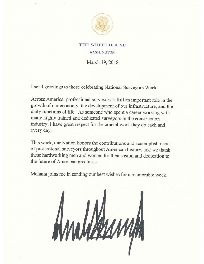 Цього тижня наша нація шанує внесок та досягнення професійних землемірів у всій американській історії, і ми дякуємо цим працьовитим чоловікам і жінкам за їхнє бачення і відданість майбутньому американської величі.