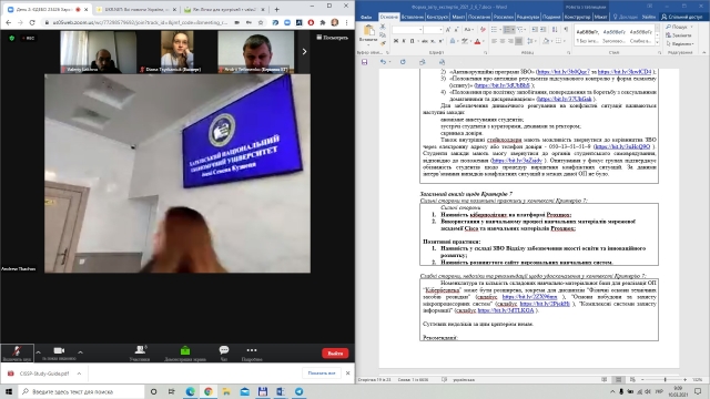Експерти мали можливість поспілкуватися з представниками студентського самоврядування. Всі зустрічі, включені до розкладу виїзду, проводилися у вигляді відеоконференцій.