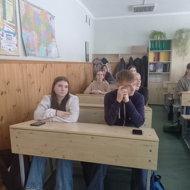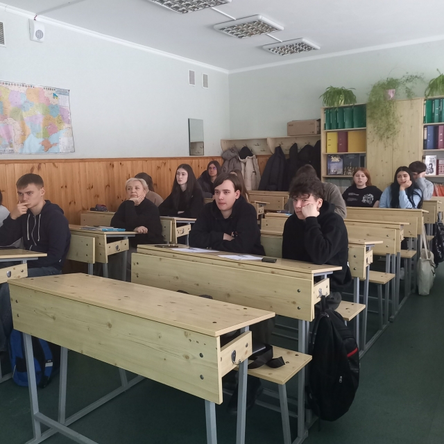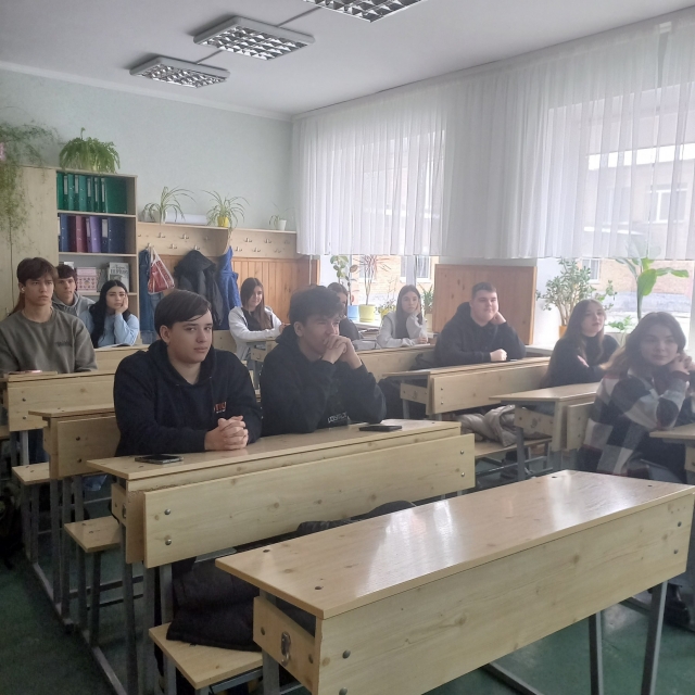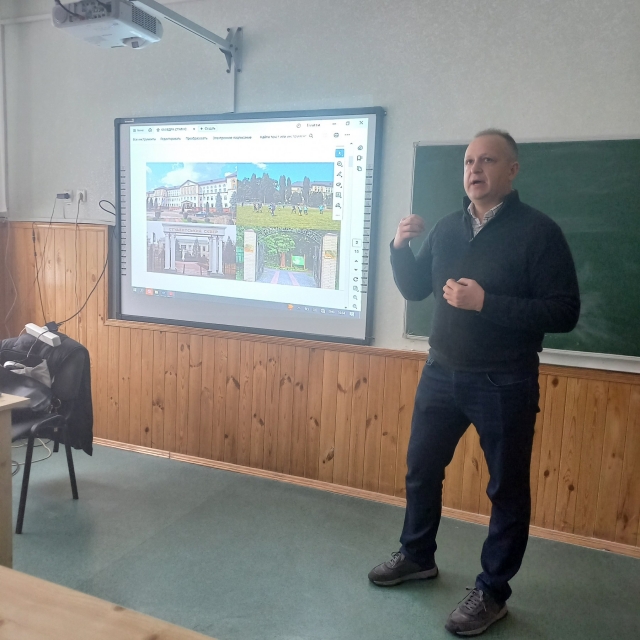 На зустріч зібрались учні двох випускних класів та вчителі школи. Спершу Андрій Музиченко представив Національний біоресурсів і природокористування України, особливості навчання в університеті та економічному факультеті, а також висвітлив вагомі переваги університету серед інших вузів України.