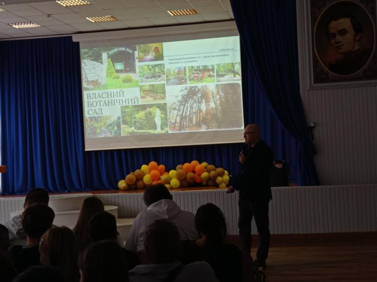 За підтримки заступника директора з навчально-виховної роботи ЛИННИК Валентини була організована зустріч з учнями випускних класів для отримання інформації стосовно можливості вступу на факультети Національного університету біоресурсів і природокористування України, особливості життя у київських гуртожитках, самореалізації молоді та високого навчального і наукового рейтингу закладу вищої освіти.