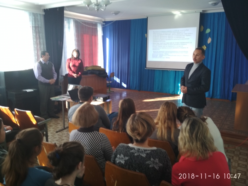 Потапова С.Є. ознайомила з інформацією щодо наявних спеціальностей та спеціалізації за якими університет проводить навчання студентів, з перевагами навчання у НУБіП України в цілому, термінами вступної кампанії, переліком необхідних сертифікатів ЗНО, проакцентувала увагу на навчанні в англомовних групах та з потенційним наступним працевлаштуванням за обраним фахом.