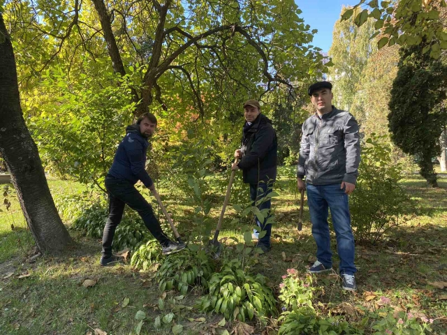 Плідно попрацювала і кафедра ґрунтознавства та охорони грунтів ім. проф. М.К. Шикули на чолі із завідувачем кафедри Кравченком Юрієм Станіславовичем. Загрібали опале листя, впорядковували клумби, рубали сухі гілки на деревах, та висаджували молоді деревця. Акція проходила в дружній, невимушеній атмосфері теплим сонячним днем, що сприяло гарному настрою.