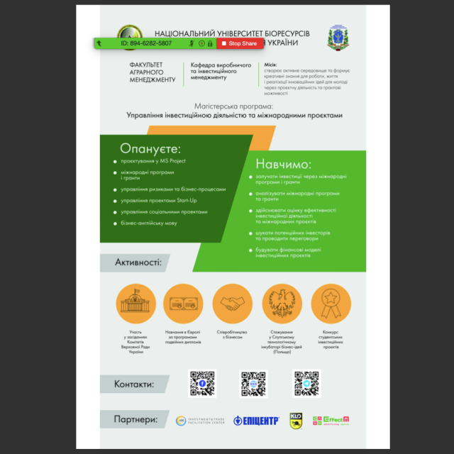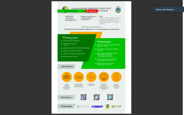 Підводячи підсумок проведеного заходу Лідія Василівна Шинкарук радо запросила всіх бажаючих опанувати мистецтво з написання бізнес-проєктів навчаючись на освітній програмі «Управління інвестиційною діяльністю та міжнародними проектами». Мета нашої програми і проведеного конкурсу - інвестувати в свою освіту сьогодні, щоб завтра мати успішне та забезпечене майбутнє.