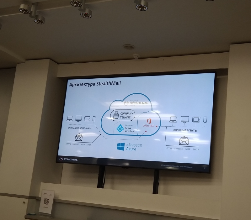 Компанія Stealthmailспівпрацює з Microsoft в питанні кібербезпеки. Захід був побудований з двох частин: в першій розглядались фактори і загрози, а в другому – демонстрація роботи рішення від Stealthmail.