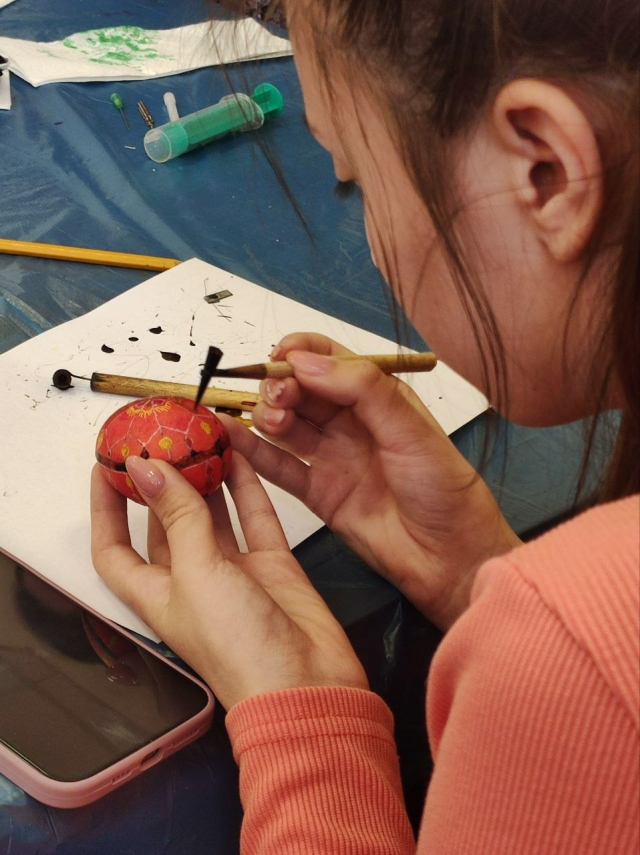 Під час майстер-класу студенти дізнались про основні етапи розпису писанок, про символіку кольорів та орнаментів. Їм продемонстрували традиційні техніки нанесення візерунків бджолиним воском та фарбування натуральними барвниками.