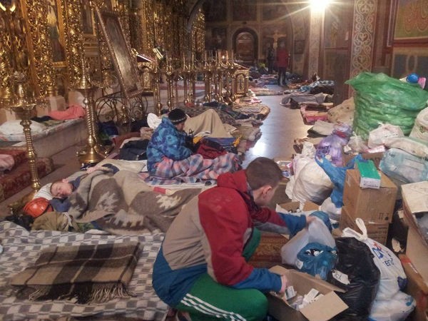 19 лютого 2019 року. У Трапезній церкві Михайлівського собору розгорнутий «резервний госпіталь», де надають допомогу постраждалим. На території Михайлівського Золотоверхого монастиря облаштовано пункт збору медзасобів, куди кияни масово привозять ліки. До Собору також приносять їжу та речі для постраждалих та інших учасників протесту.