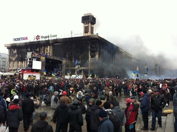 Майдан, 20 лютого 2014 року. Пожежа в Будинку профспілок ліквідована.