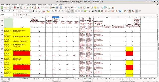 Другого листопада 2022 року наставник академічної групи КІ-22012б провів online зустріч з групою. Розглядалось тема першої атестації. Студенти задавали питання по поточним проблемам і ситуаціям, в яких опинились під час атестації і пояснили причини по яким вони отримали негативні оцінювання. За останні дні навчання причинами є відключення електрики, падіння швидкості чи відсутність інтернету. Обговорили варіанти усунення заборгованостей. В цілому група успішно показала результати.