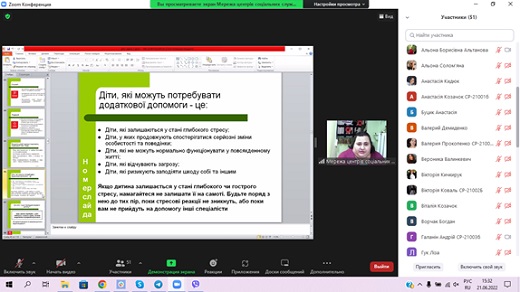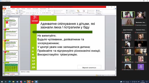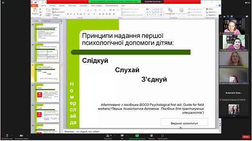 Тому тема «Перша психологічна допомога та стабілізація психологічного стану дітей в критичних ситуаціях», обрана для обговорення провідним психологом Центру Любов’ю Лоріашвілі спільно з завідувачем кафедри соціальної роботи та реабілітації Іриною Сопівник та керівником практики студентів Альоною Альтановою, є вкрай актуальною.