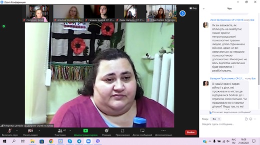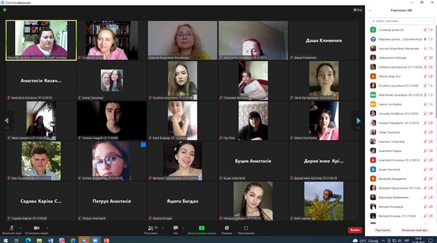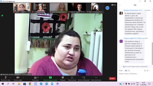 21 червня в межах проходження практики студентами 1 курсу спеціальності «Соціальна робота» відбулась онлайн зустріч із провідним фахівцем-психологом та завідувачем відділу Київського міського центру соціальних служб Любов’ю Лоріашвілі.