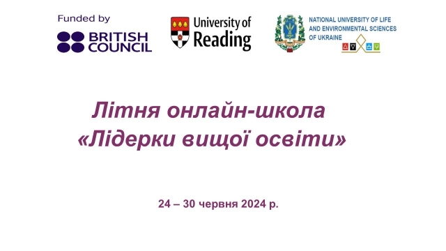 Протягом 24-30 червня Національний університет біоресурсів і природокористування України у співпраці з Університетом Редінг (Велика Британія) провели Літню школу «Лідерки вищої освіти» для представниць науково-викладацької спільноти провідних університетів України. Учасницями стали лідерки Білоцерківського Національного аграрного університету, Відокремленого підрозділу Національного університету біоресурсів і природокористування України «Ніжинського агротехнічного інституту», Державного торговельно-економічного університету, ДЗВО «Університету менеджменту освіти» НАПН України, Донецького національного університету імені Василя Стуса, Львівського національного університету ветеринарної медицини та біотехнологій імені С.З. Гжицького, Національного університету біоресурсів і природокористування України, ПрАТ «ВНЗ «Міжрегіональної Академії управління персоналом», Національного медичного університету імені О.О. Богомольця, Сумського національного аграрного університету, Таврійського державного агротехнологічного університету імені Дмитра Моторного, Фахового коледжу бізнесу та аналітики Національної академії статистики, обліку та аудиту.