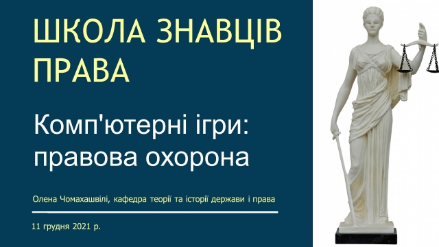 11 грудня 2021 р. відбулась остання у цій сесії онлайн-зустріч «Школи знавців права». Цього разу мова йшла про правову охорону комп’ютерних програм засобами права інтелектуальної власності. Спікеркою виступила Олена Чомахашвілі, доцентка кафедри та фахівчиня у сфері права інтелектуальної власності.