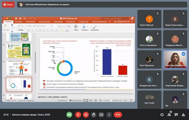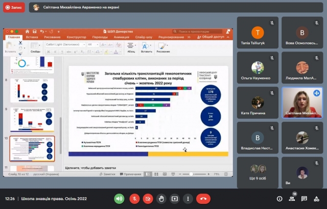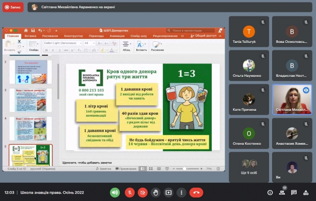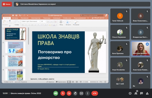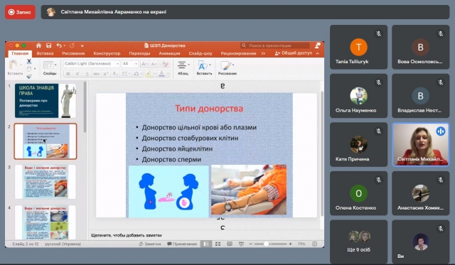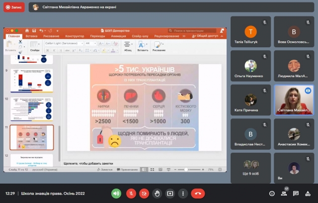 Розмовою про донорство кафедра ТІДП завершила осінню сесію онлайн-вебінарів 2022 року просвітницького проєкту «Школа знавців права» для школярів