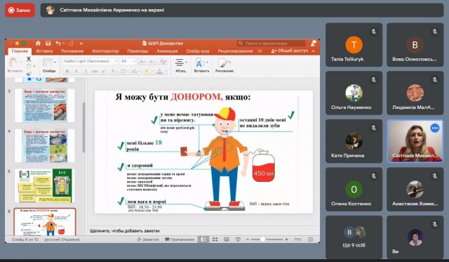 Учасникам/цям розповіли, навіщо потрібна донорська кров, у яких випадках її використовують, хто може бути донором та які переваги існують у донорів крові.