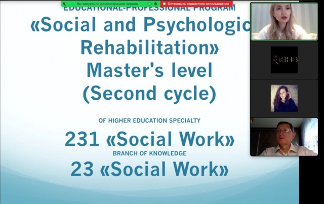У контексті своєї допові Дар’я Миколаївна презентувала Освітньо-професійну програму «Соціально-психологічна реабілітація» підготовки здобувачів вищої освіти другого (магістерського) рівня за спеціальністю «Соціальна робота» з акцентом на перспективність її провадження іноземною мовою. Вона зазначила, що запорукою загального й професійного зростання молодого спеціаліста є виважене залучення до різних сфер самовиховання засобом формування належного рівня компонентів професійної підготовки з включенням іншомовного аспекту. В Україні актуальність даного питання викликана необхідністю модернізації галузевої комунікації, зокрема, специфікою навчання в контексті інтернаціоналізації вищої освіти та особливостями адаптації в умовах лінгвокультурного середовища.
