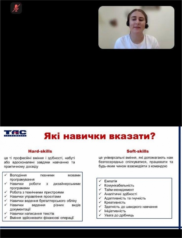 Кафедрою обліку та оподаткування економічного факультету організовано вебінар «Секрети успішного резюме для майбутніх фахівців з обліку і аудиту». Запрошеною спікером стала Ксенія Бобер – головний фахівець з навчання навчального центру ТАСКОМБАНКу.