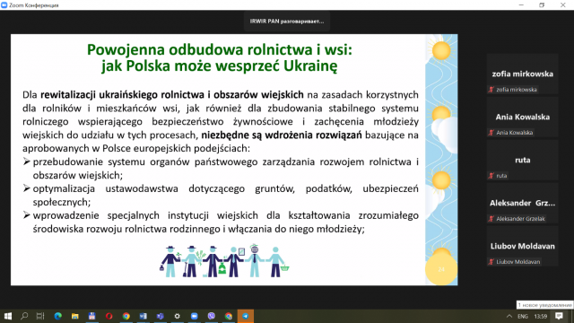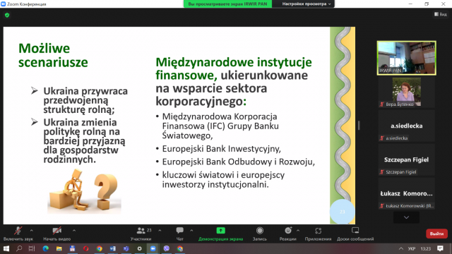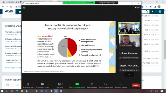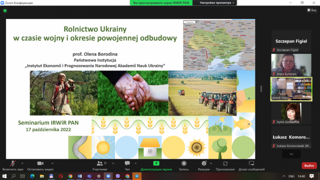 17 жовтня 2022 року в Інституті розвитку села та сільського господарства Польської академії наук відбувся семінар під назвою «Сільське господарство України в роки війни та період повоєнної відбудови», участь у якому взяла д.е.н., доцент кафедри економічної теорії Бутенко В.М. та аспіранти кафедри.