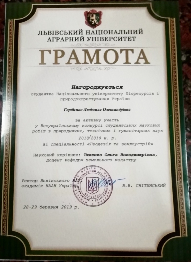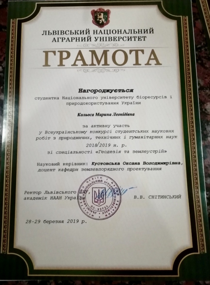 У Львівському національному аграрному університеті 28 – 29 березня 2019 року відбувався II етап Всеукраїнського конкурсу студентських наукових робіт з природничих, технічних та гуманітарних наук за напрямом «Геодезія та землеустрій».