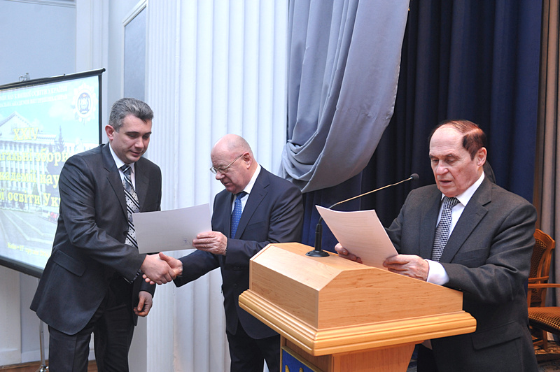 Віце-президент АН ВО України, д.м.н., проф. Зозуля І.С. вручає Диплом другої премії журі конкурсу АН ВО України у номінації «Монографія»