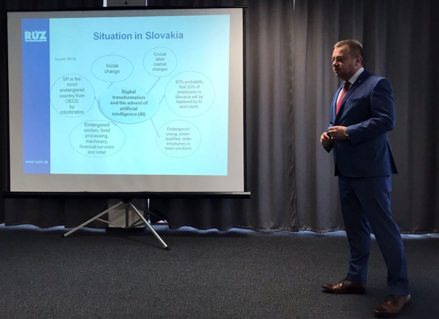 До вітального слова долучилася також декан факультету соціально – економічних відносин Eva IVANOVÁ, яка у своєму виступі зазначила, що нові технології цього віку широко називають промисловістю 4.0. Швидке зростання оцифровки, роботизації та інтелектуальної автоматизації має великий вплив на ринки, включаючи ринок праці. Технологічні зміни руйнують деякі робочі місця, створюючи нові робочі місця та професії. Заміна робочих місць роботами, розумними транспортними засобами, цифровізовані та пов'язані з цим процеси матимуть великий вплив на ринок праці, що призведе до масового безробіття.