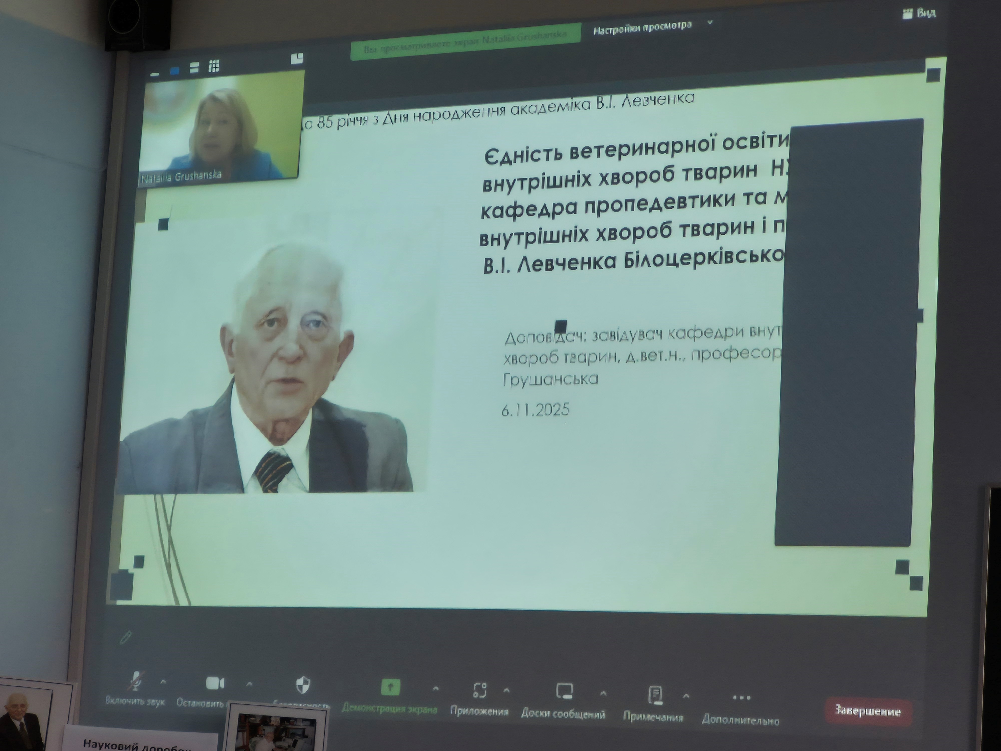 6–7 листопада 2025 р. на базі кафедри пропедевтики та медицини внутрішніх хвороб тварин і птиці імені В.І. Левченка Білоцерківського НАУ відбулася Всеукраїнська науково-практична конференція “Актуальні аспекти внутрішньої патології тварин: виклики, досвід, інновації, перспективи”, присвячена 85-річчю від дня народження доктора ветеринарних наук, професора, академіка НААН, заслуженого працівника ветеринарної медицини України Левченка Володимира Івановича. У конференції, від НУБіП України, прийняли участь Наталія ГРУШАНСЬКА, Андрій РОЗУМНЮК і Павло ШАРАНДАК. Кафедрою внутрішніх хвороб тварин були висвітлені доповіді щодо співпраці з дружньою кафедрою з Білоцерківського НАУ, дослідження застосування кверцентину у ветеринарній медицині, морфологічних змін крові у собак хворих на бабезіоз й ентерального годування котів за патологій печінки. Сама конференція пройшла у дружній атмосфері й викликала непідробний інтерес і жваві дискусії в усіх учасників.