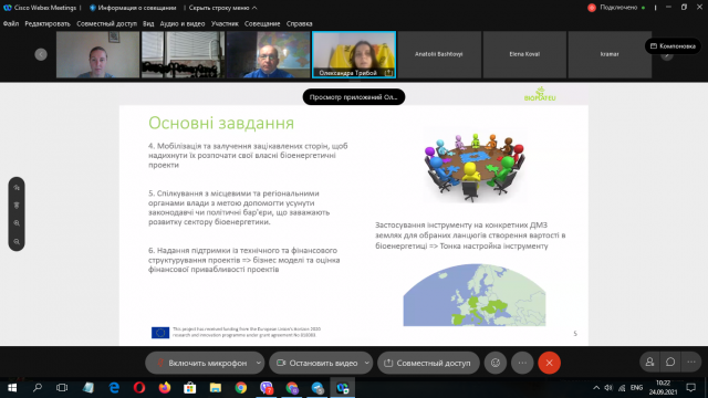 Мета онлайн зустрічі: Проінформувати про результати проекту BIOPLAT-EU та представити WebGIS інструмент для оцінки сталості біоенергетичних проектів на незадіяних землях.