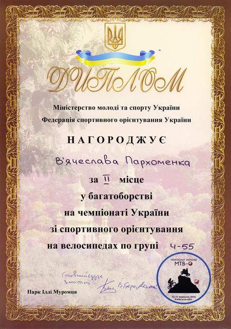В’ячеслав Пархоменко виступав у групі чоловіків Ч55, переміг на першій дистанції спринту, зайняв два других місця на середній і довгій дистанціях і у підсумку набрав однакову суму балів за три дистанції змагань з чернівчанином Іваном Тумаком. У такому випадку, за правилами змагань, судді віддають вище місце спортсмену, який має меншу суму часу долання усіх трьох дистанцій. Саме за цим показником переможцем групи став Іван Тумак.