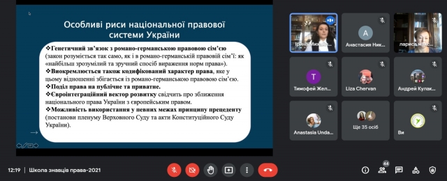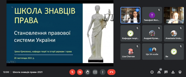 20 листопада 2021 р. відбувся другий вебінар «Становлення правової системи України» для учасників просвітницького онлайн-проєкту «Школа знавців права».