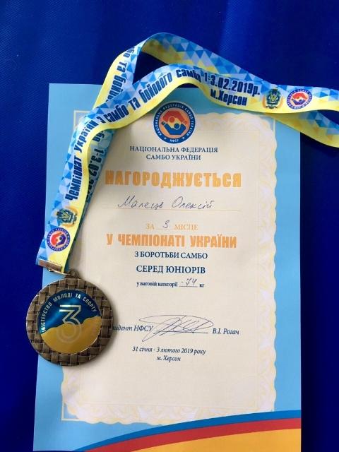 Студенти Національного університету біоресурсів і природокористування України продовжують радувати своїми спортивними перемогами. Цього разу першокурсник факультету землевпорядкування Олексій Малець зайняв почесне 3 місце у чемпіонаті України з боротьби самбо серед юніорів у ваговій категорії 74 кг.