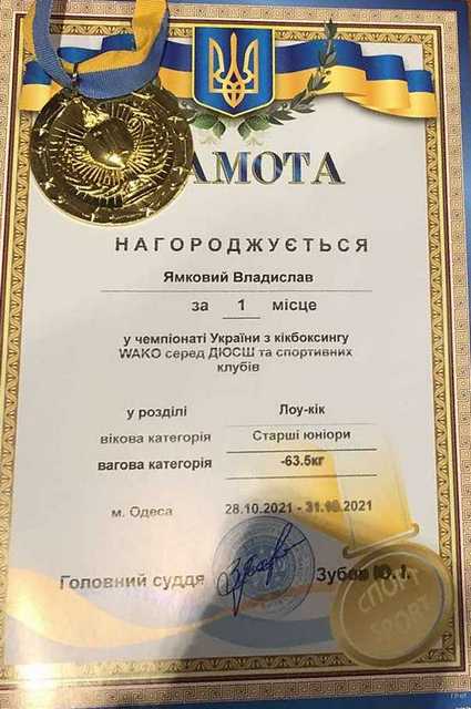 У нелегкій боротьбі Владислав виборов 1 місце місцях у змаганнях серед старших юніорів в розділі "Лоу-кік", ваговій категорії - 63,5 кг.