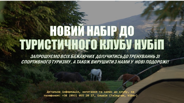 Студентство, туристичний клуб НУБіП оголошує про новий набір!