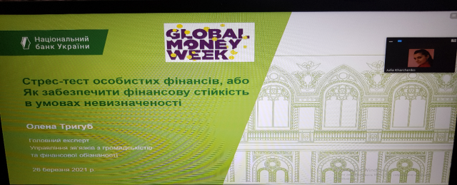 Протягом 22.03.2021 – 26.03.2021 рр. в м. Києві в НБУ проходив Всесвітній тиждень грошей (Global Money Week) – це щорічна міжнародна інформаційна кампанія, яка містить заходи на фінансову тематику для активних учнів шкіл та ліцеїв, а також студентів коледжів й ВУЗів запрошені Міністерством освіти та науки України. Гасло даної кампанії – “Навчайся! Накопичуй! Заробляй!”.