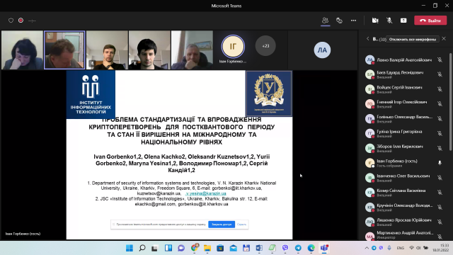 Доповідав Іван Дмитрович Горбенко, головний конструктор ПРАТ «Інститут Інформаційних Технологій», доктор технічних наук, професор, академік Академії наук прикладної радіоелектроніки, лауреат Державної премії України в галузі науки і техніки, полковник у відставці, відмінник освіти України.