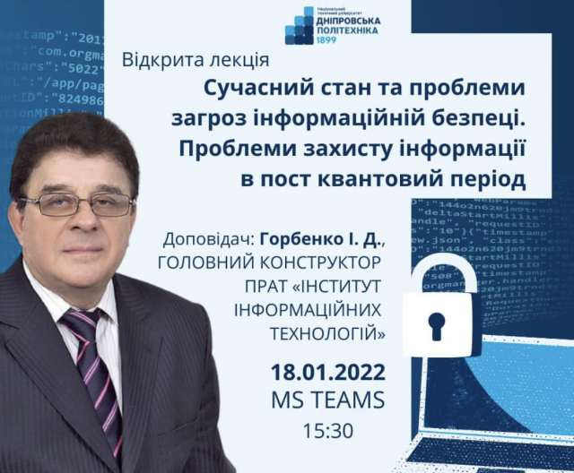 Студенти кафедри комп'ютерних систем, мереж та кібербезпеки прослухали відкриту online лекцію: «Сучасний стан та проблеми загроз інформаційній безпеці. Проблеми захисту інформації в пост квантовий період»