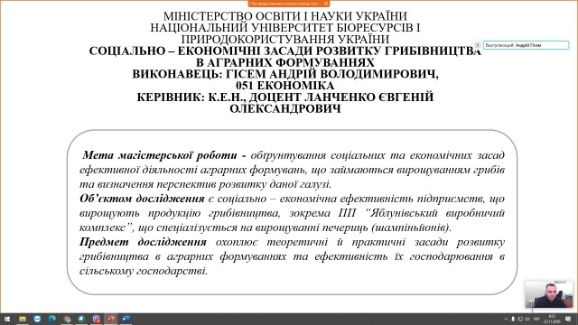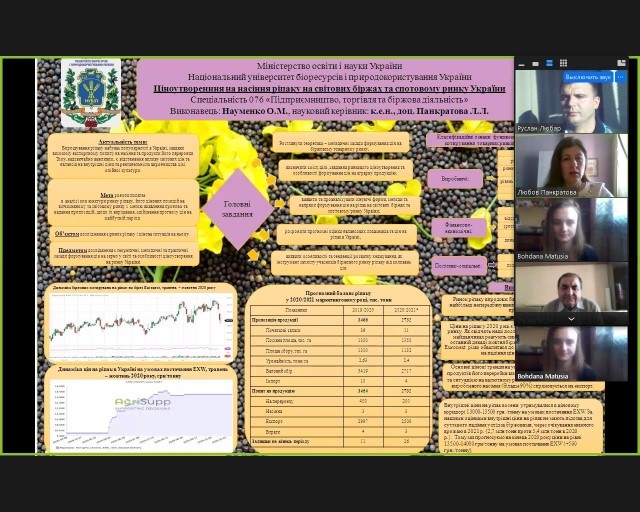 На кафедрі економіки підприємств ім. проф. Романенка відбулася постерна презентація випускних робіт студентів магістратури 2-го року навчання спеціальності 051 «Економіка», (спеціалізації «Економіка підприємства»), вибіркового блоку «Економіка аграрних формувань».