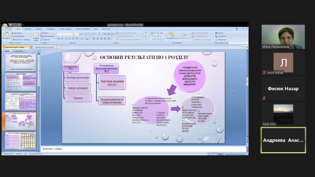 Проведений захід був корисним для студентів-магістрів, оскільки дав їм змогу під іншим кутом зору поглянути на власний доробок, поділитися отриманими результатами, опанувати навички доповідача, які їм знадобляться не тільки під час основного захисту магістерських робіт, а й у майбутній професійній діяльності.