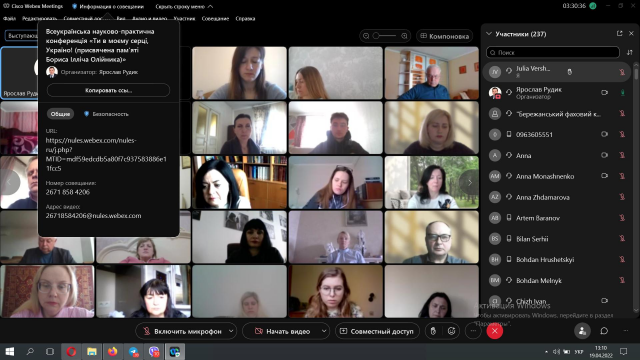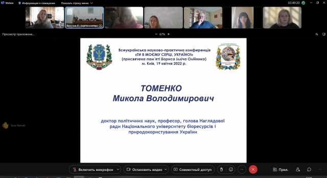 19 квітня 2022 року на базі гуманітарно-педагогічного факультету НУБіП України була проведена Всеукраїнська науково-практична конференція, присвячена пам’яті Бориса Ілліча Олійника «Ти в моєму серці, Україно!». Борис Олійник — автор понад 40 книг, віршів, есе, статей, які друкувалися в Україні, перекладались російською, чеською, словацькою, польською, сербською, румунською, італійською та іншими мовами. Метою конференції було дослідження, вивчення, переосмислення та популяризація творчої спадщини видатного митця та громадсько-політичного діяча у царині літератури, культури – Бориса Ілліча Олійника; наукове осмислення взаємодії поезії, історії та сучасності в національному й глобальному вимірах; проведення діалогу щодо патріотичного дискурсу в умовах російсько-української війни. Всі із захопленням слухали доповідачів з високим рівнем підготовки і цікавими матеріалами доповідей.