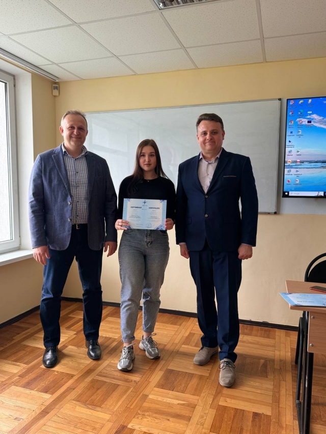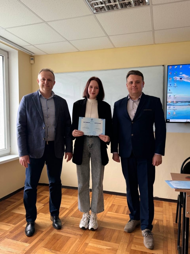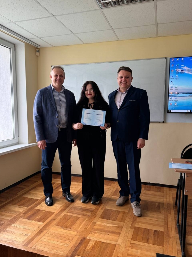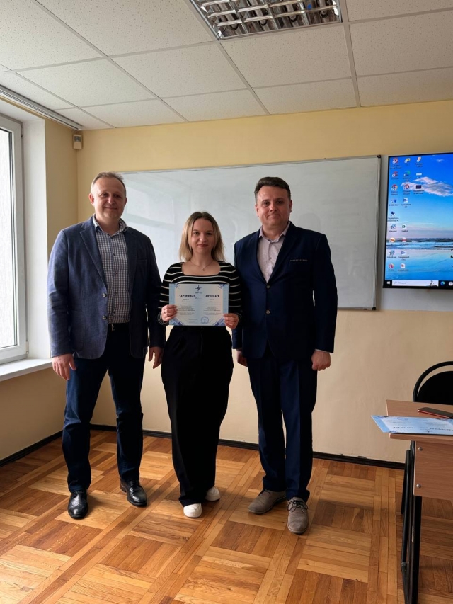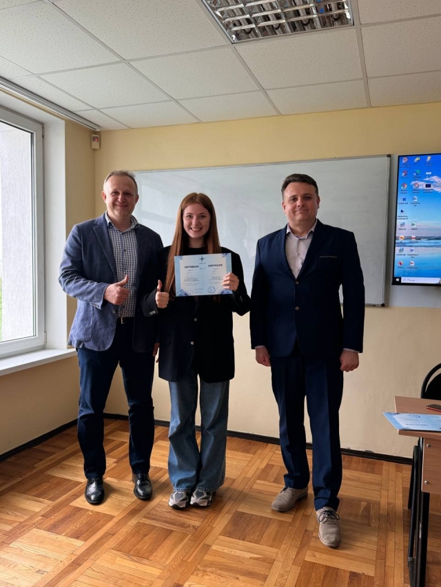 25.04.2024 відбулося вручення сертифікатів студентам 3 курсу освітньої програми «Аналітично і обліково-правове забезпечення бізнесу», а також завідувачу кафедри статистики та економічного аналізу Музиченку Андрію Олександровичу, заступнику декана Нагорному Віталію Володимировичу та доценту кафедри статистики та економічного аналізу Музиченко Тетяні Олександрівні за проходження курсу українського програмного забезпечення «Дебет Плюс».