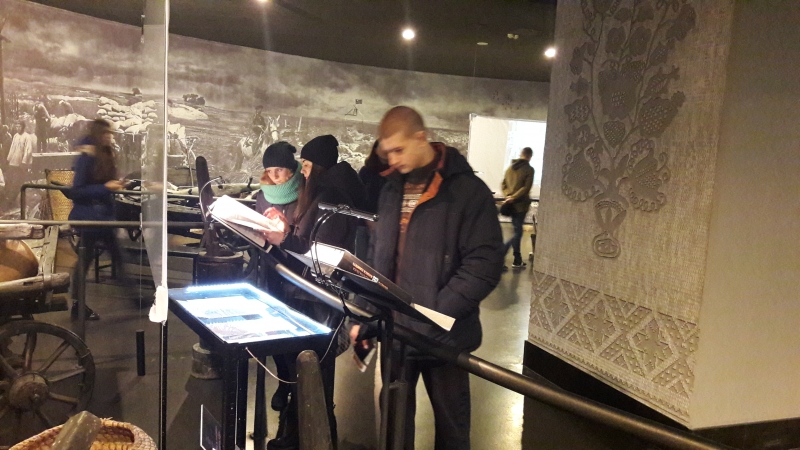 Організатори виставки провели короткий ескурс музеєм, представили документальні фільми, які розчулили кожного студента. Показали багатотомні книги, в яких постали кількість загиблих за цей період майже по козному місти та селищу України. Кожна книга відповідала певному регіону нашої країни. Студенти розглядали виставку на який представлені експонати того часу: зернотертки, рала, дитячі колиски.