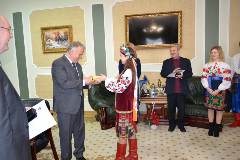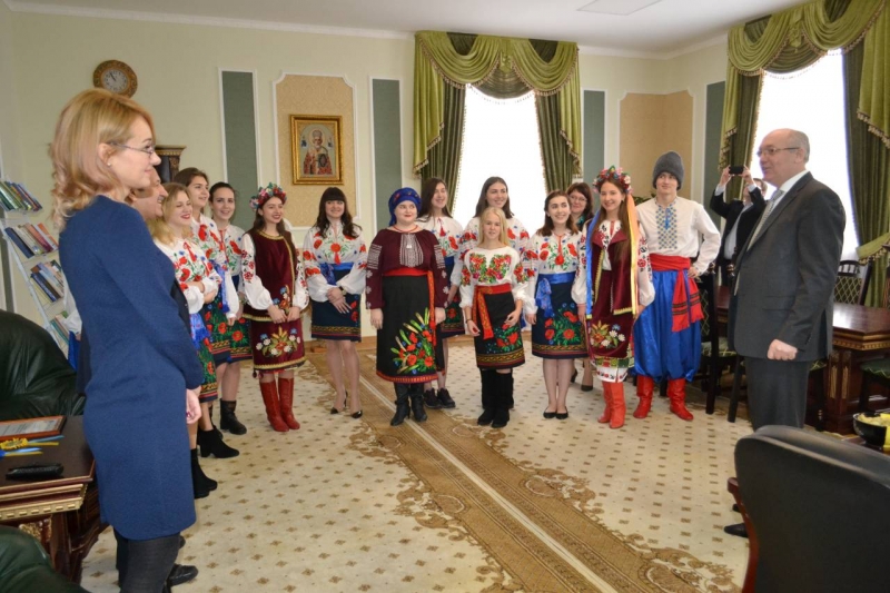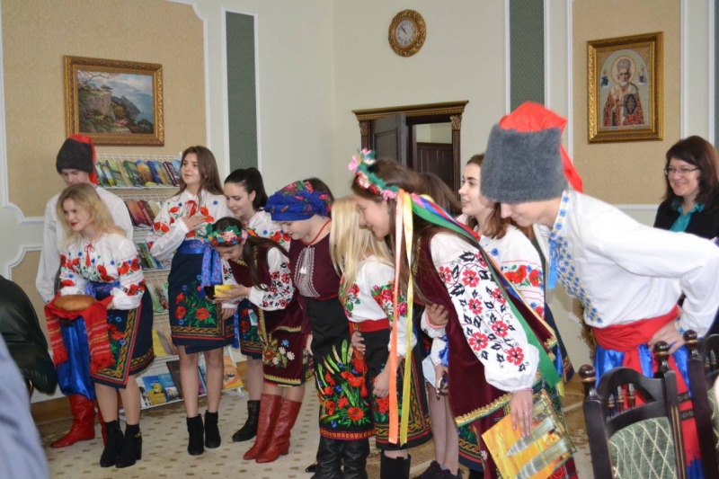 Члени гуртка разом з деканом гуманітарно-педагогічного фокультету Шинкаруком Василем Дмитровичем, заступником декана Харченко світланою Василівною, завідувачем кафедри соціальної педагогіки та інформаційних техологій в освіті Вікторовою Лесею Вікторівною, доцентом кафедри Ржевським Геннадієм Миколайовичем привітали народними піснями, танцями і звичайно ж, короваєм та варениками, з щирими словами вдячності та найкращими побажаннями нашого Господаря ректора нашого славетного університету член-кореспондента Національної академії педагогічних наук України, доктора педагогічних наук, професора Ніколаєнко Станіслава Миколайовича, зі святом Андрія Первозваного – покровителя жителів України.
