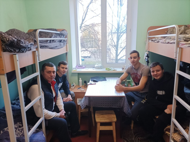 Окрім регулярних зустрічей, куратори кафедри працюють безпосередньо з кожним своїм студентом в неурочний час, особливо з першокурсниками. (нижче на фото студенти групи ТТ – 2207 і їх куратор Бондарєв С.І. у гуртожитку).