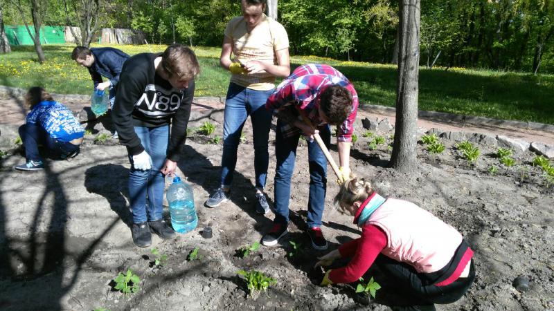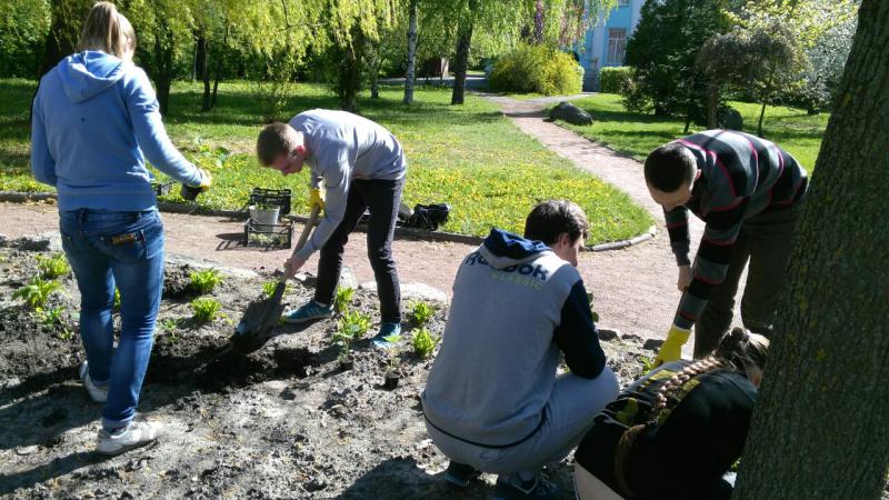 Напередодні пасхальних свят студенти факультету інформаційних технологій спеціальності «Економічна кібернетика» разом з деканом Глазуновою О.Г. та викладачем Волошиною Т.В. висаджували квіти на клумбі між 2 і 3 корпусом університету.