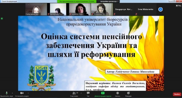 - Тетяни Гайдученко (здобувачки ОС «Магістр» 1 року навчання спеціальності 071 «Облік і оподаткування» освітньо-професіййної програми (ОПП) «Облік і аудит») на тему «Оцінка системи пенсійного забезпечення України та шляхи її реформування», науковий керівник – завідувач кафедри обліку та оподаткування Євгенія Калюга;