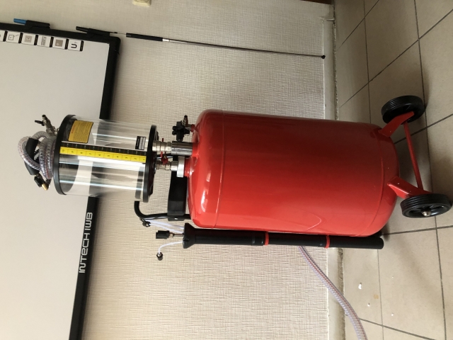 Пересувна пневматична установка для зливу та вакуумного відкачування відпрацьованого масла з прозорою мірною колбою. Укомплектована індикатором рівня та серією щупів.