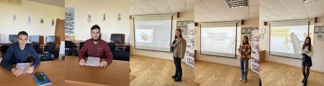 Студенти обговорювали право на соціальний захист, право на житло, право на достатній життєвий рівень для себе і своєї сім‘ї, право на охорону здоров‘я, медичну допомогу та медичне страхування. Кожний з них проявив свої здібності у пошуку інформації, яку пізніше активно будуть використовувати на практиці у державних установах.