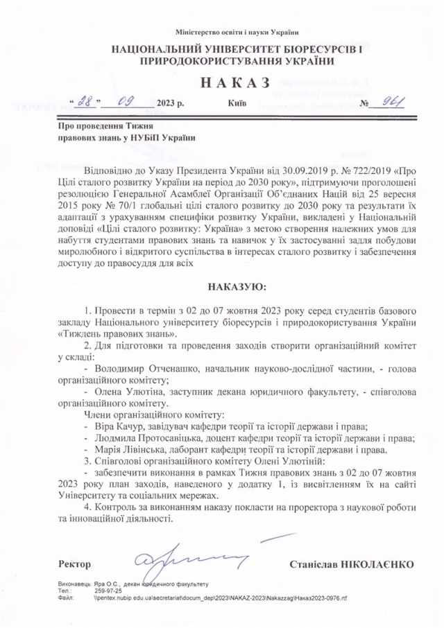 У понеділок стартував ХІІ «Тиждень правових знань у НУБіП України», який проводиться за ініціативи кафедри теорії та історії держави і права з 2012 року. Графік проведення заходів є досить насиченим. Тож кожного дня ми будемо інформувати наших читачів про них.