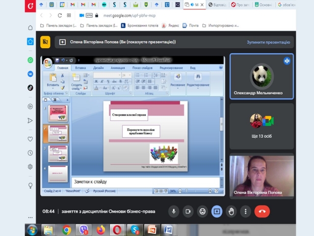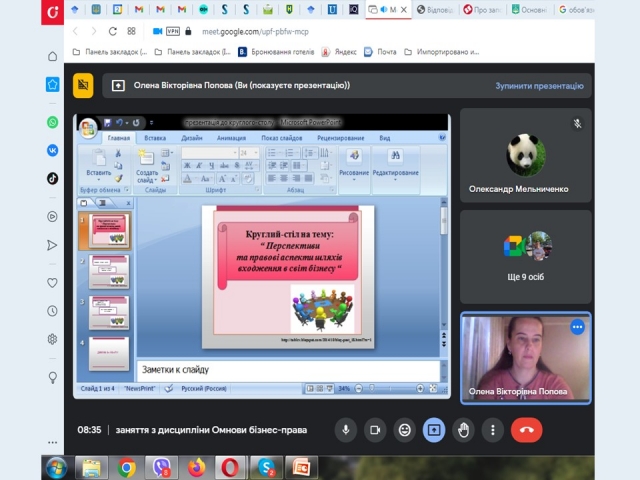 Розпочала цикл заходів Олена Попова, яка 02 жовтня 2023 р. провела зі студентами 4 курсу різних структурних підрозділів Університету круглий стіл «Перспективи та правові аспекти шляхів входження в світ бізнесу».