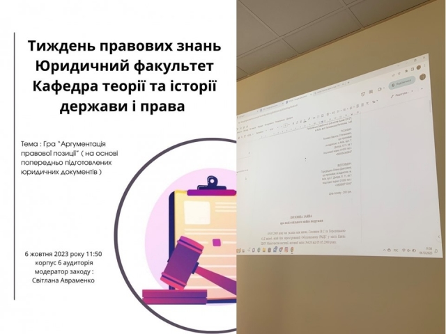 Тиждень правових знань-2023: День п’ятий: студенти-правники взяли участь у грі «Аргументація правової позиції»