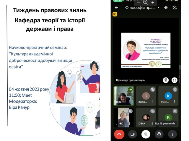Тиждень правових знань-2023: День третій: культура академічної доброчесності у полі зору учасників науково-практичного семінару